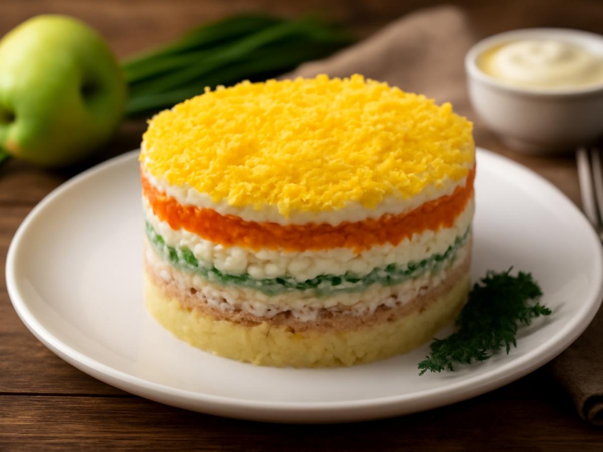 Салат "Мимоза" — одно из тех блюд, без которых невозможно представить праздничный стол. Его готовят на Новый год, дни рождения, юбилеи и просто для уютных домашних ужинов. Классический вариант остаётся неизменным на протяжении десятилетий: нежные слои рыбы, овощей и яиц под майонезом превращаются в воздушный, сбалансированный по вкусу салат. Название отражает внешний вид — желтые крошки желтков действительно напоминают весенние цветы мимозы на фоне белоснежного снега. Основная идея блюда Мимоза — это салат-слоёнка. В основе — рыбные консервы, чаще всего сайра, сардина или горбуша. Рыбу выкладывают первым слоем и слегка разминают вилкой, чтобы получить ровную основу. Далее идут овощи и яйца, натертые на мелкой тёрке, каждый слой промазывается тонким слоем майонеза. Итог — нежная, чуть сладковатая структура, в которой каждый ингредиент дополняет другой. Традиционно Мимозу сравнивают с "Оливье" и "Селёдкой под шубой": все три блюда — символы русской кухни и неизменные участники зимних праздников. Однако Мимоза выигрывает своей лёгкостью и текстурой — она не утяжеляет стол и подходит даже для вечернего меню.